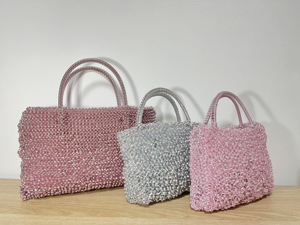 大人かわいいワイヤーバッグ風を編んでみた|ラメルヘンテープでキラキラ高見えバッグに挑戦!