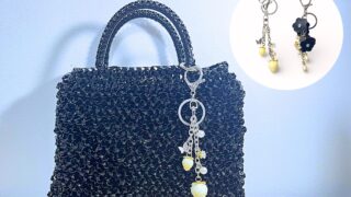 これまでいろんなバッグを作ってきましたが、ハンドメイドバッグは、シンプルな分、チャームを付けると印象が大きく変わります。そこで今回は、バッグに合わせて2種類のチャームを作りました。はじめにこの記事は、ラメルヘンテープ エナメルブラック3mm...