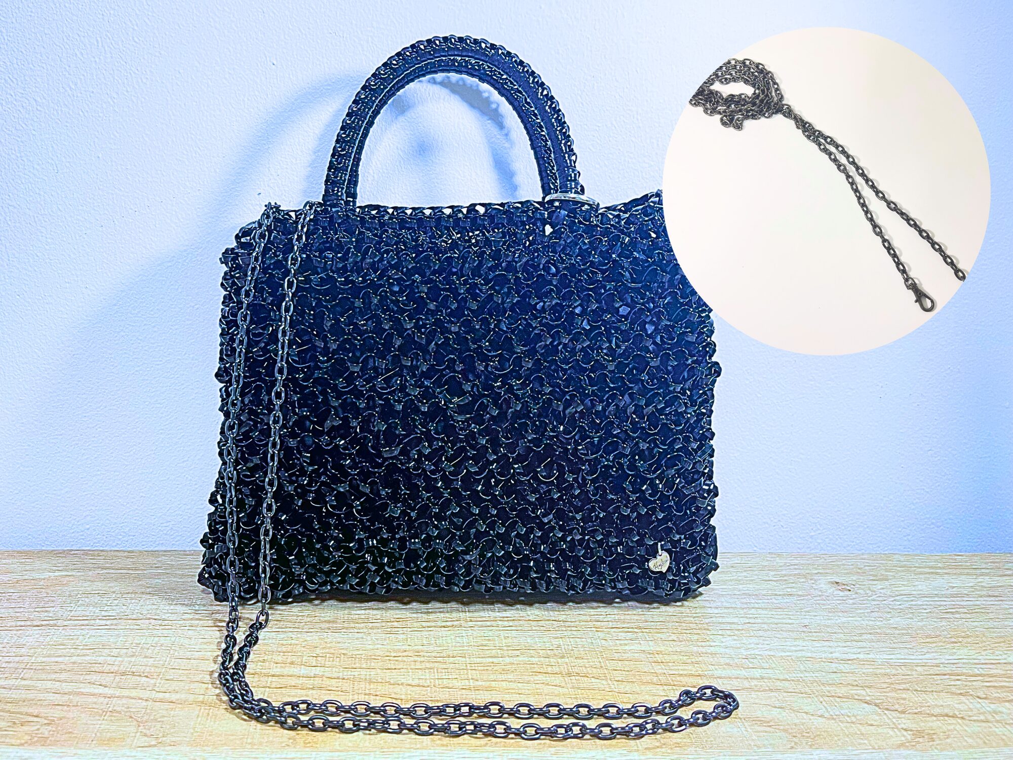 取り外し可能なショルダーチェーンとして使えるようにしています。