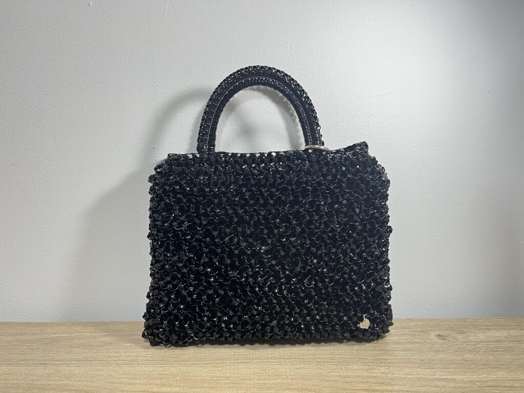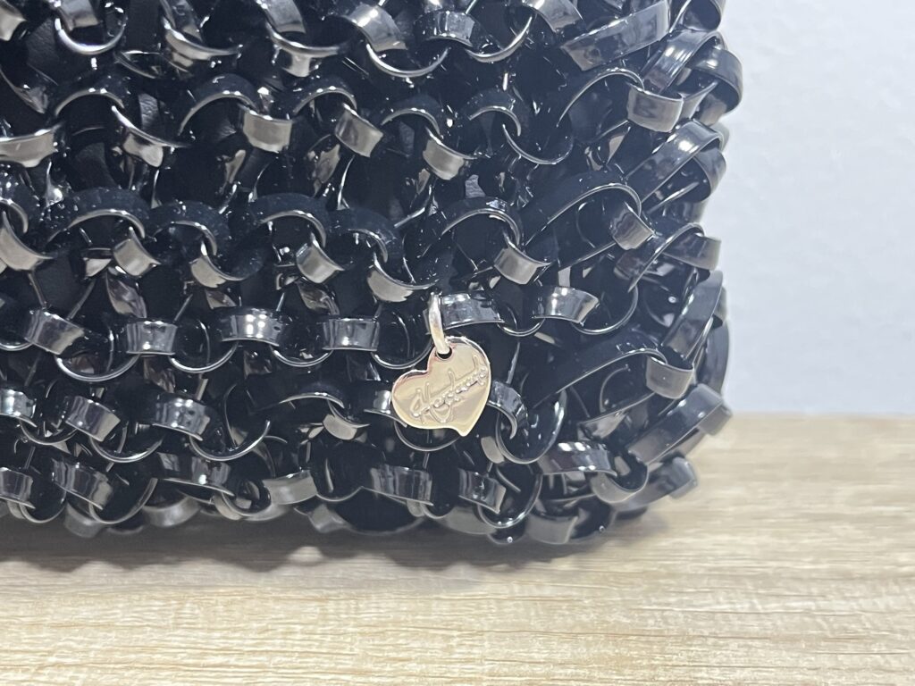 ラメルヘンテープ エナメルブラック3mmで作ったワイヤーバッグ風ハンドバッグの制作記録の一部です。