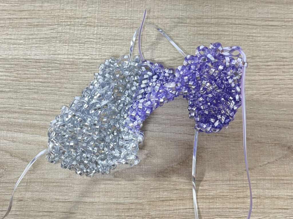 編んだものをネットに編み付けると、まっすぐピシッと整うので、これまで困っていたことは解消されたかなと思います。
