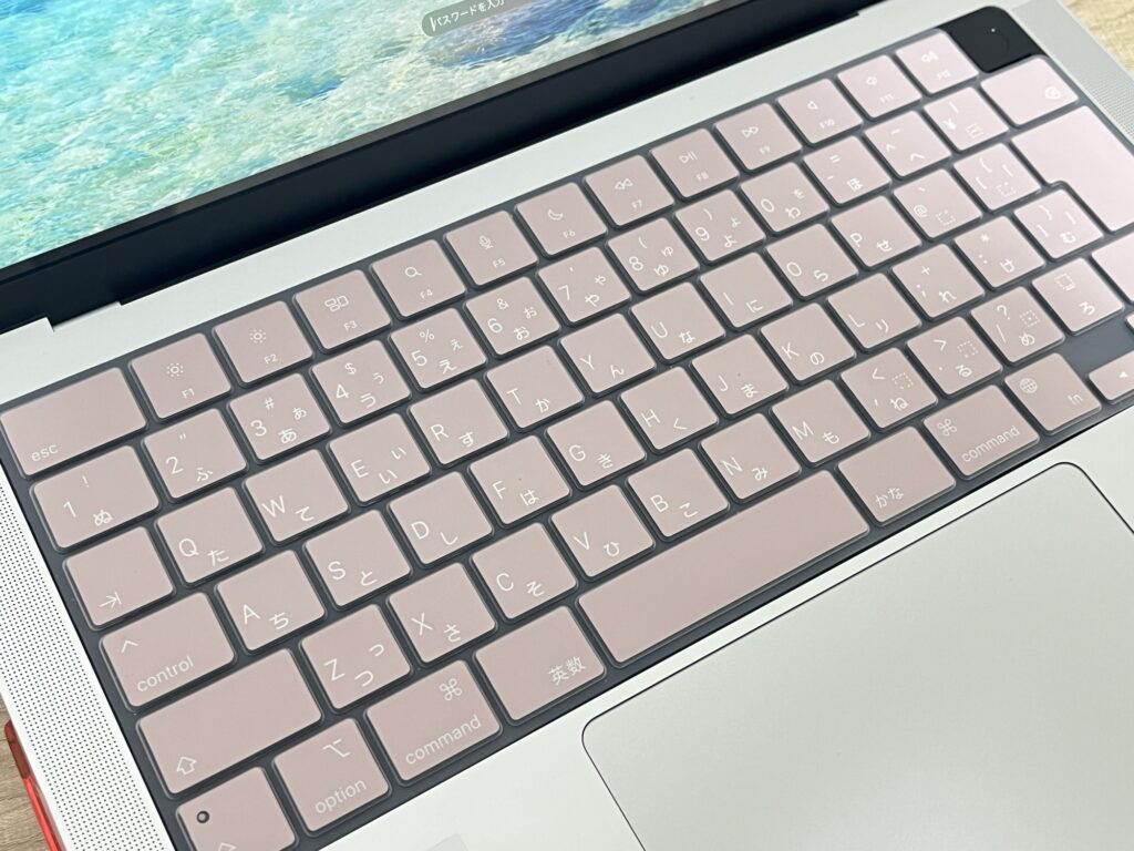 キーボードカバーは淡いピンク色で、タイピングもしやすく、日々の作業が楽しくなりました。