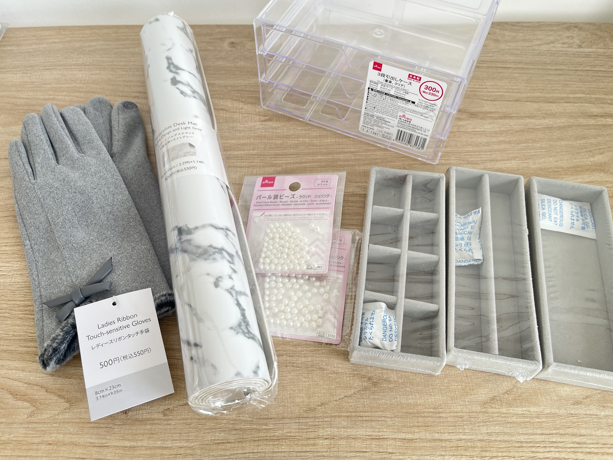 3段引き出しケース(¥330-)とアクセサリートレイ