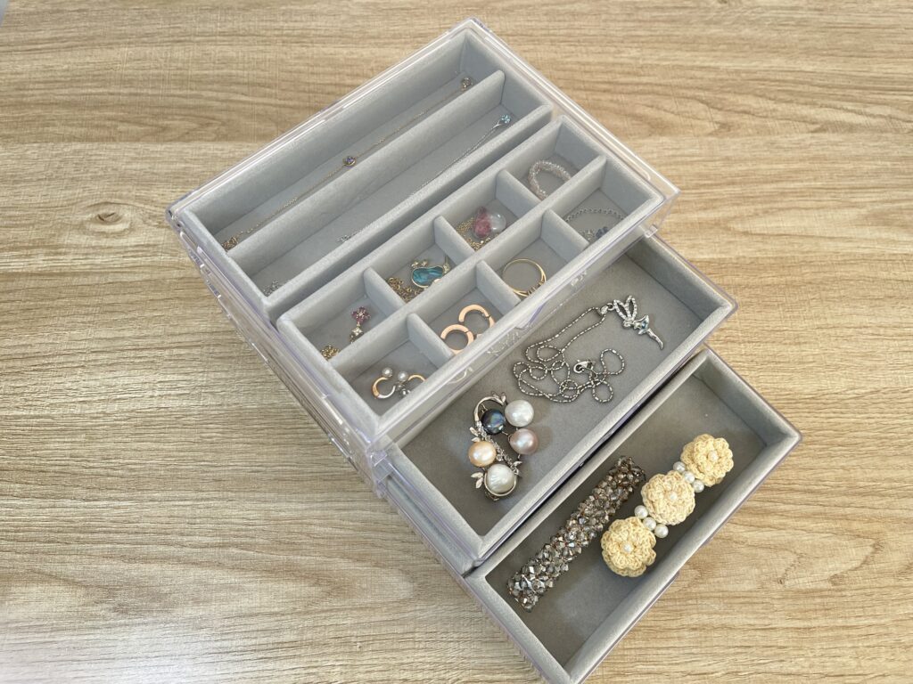 トレイがぴったり収まってくれたし、ケースが透明だから、お気に入りのジュエリーが見えるのも意外と気に入りました。